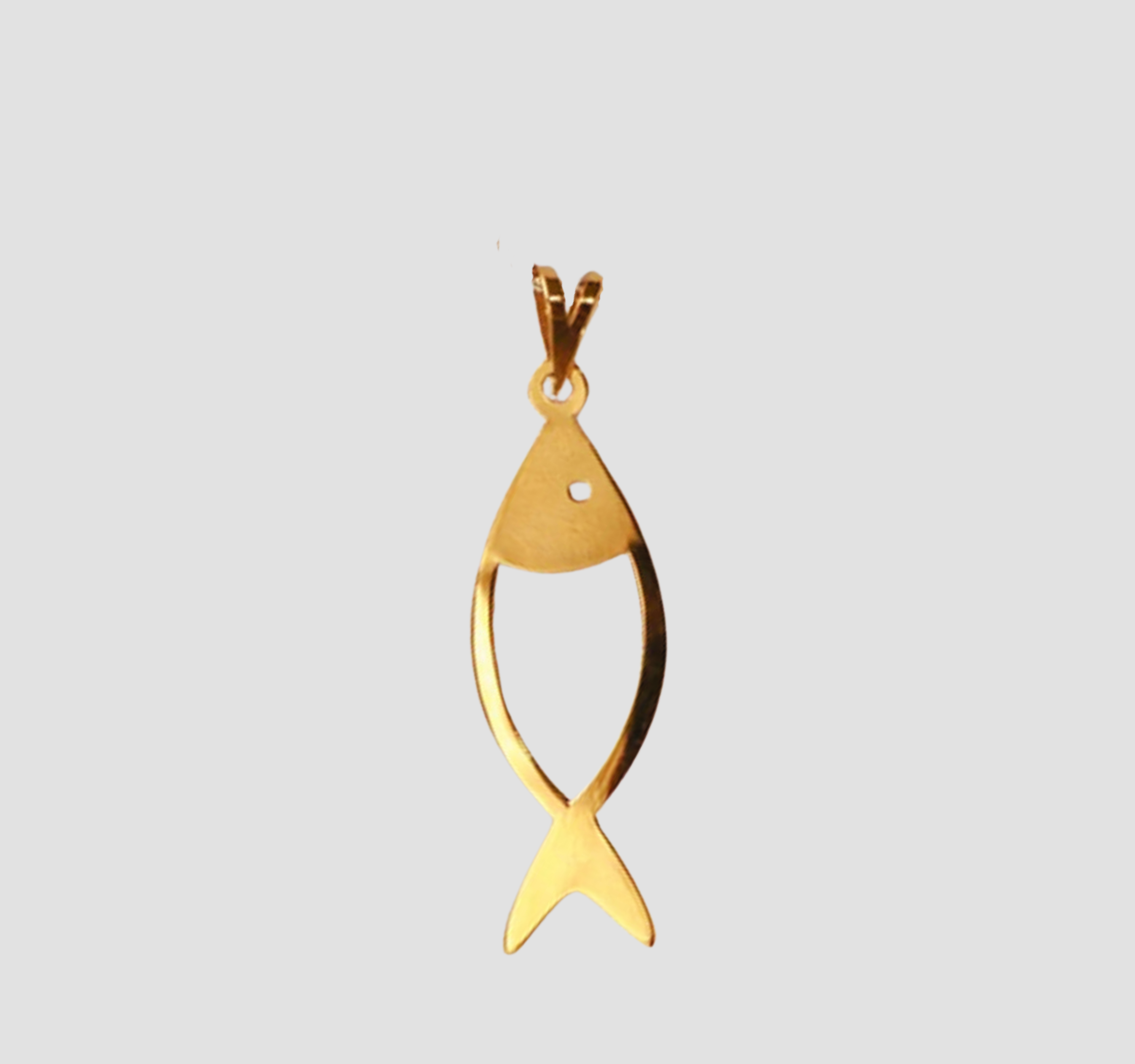 this handmade pendant showcases a minimalistic fish design, perfect for adding a touch of class to any outfit.