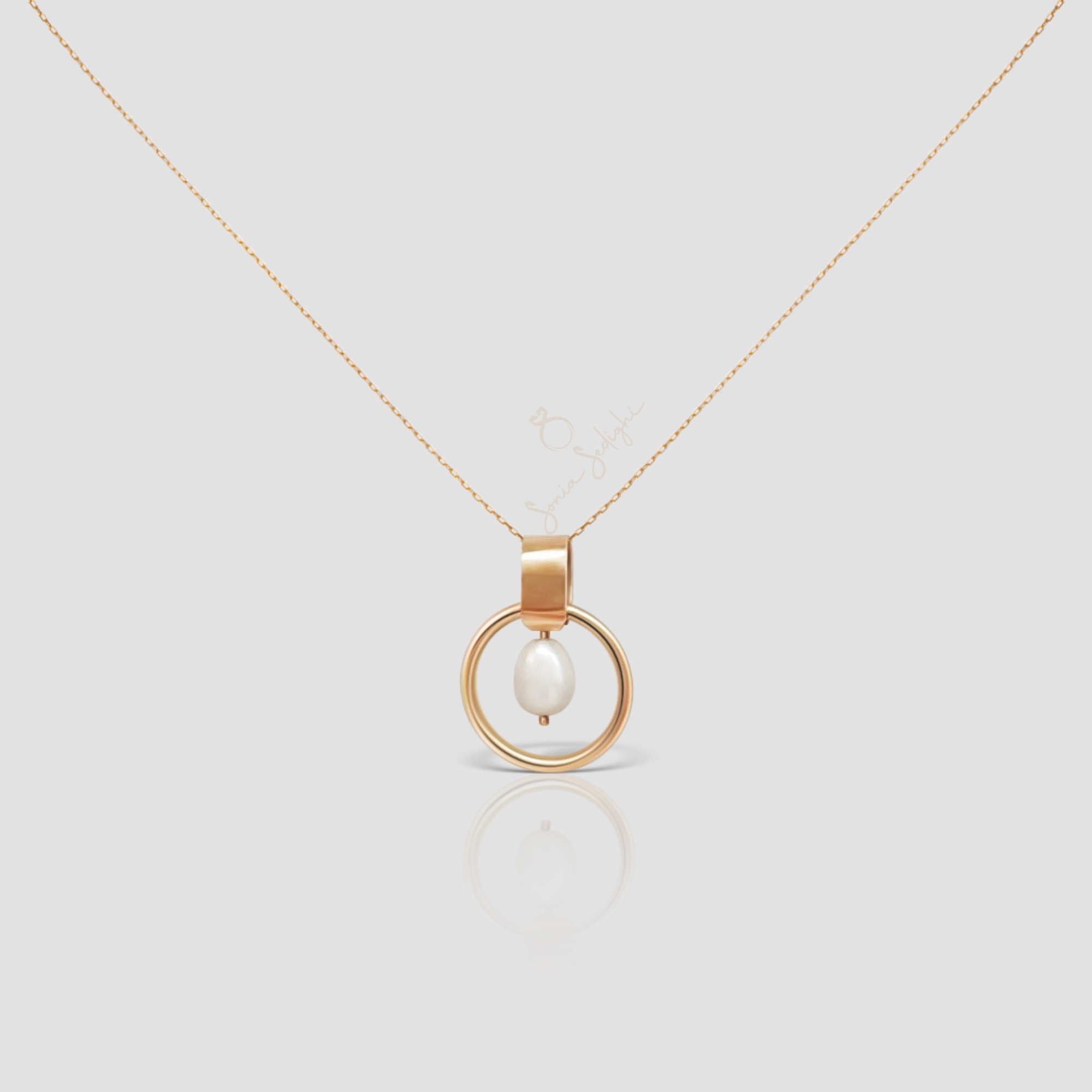 Handmade 14K Gold Pearl Karma Circle Necklace