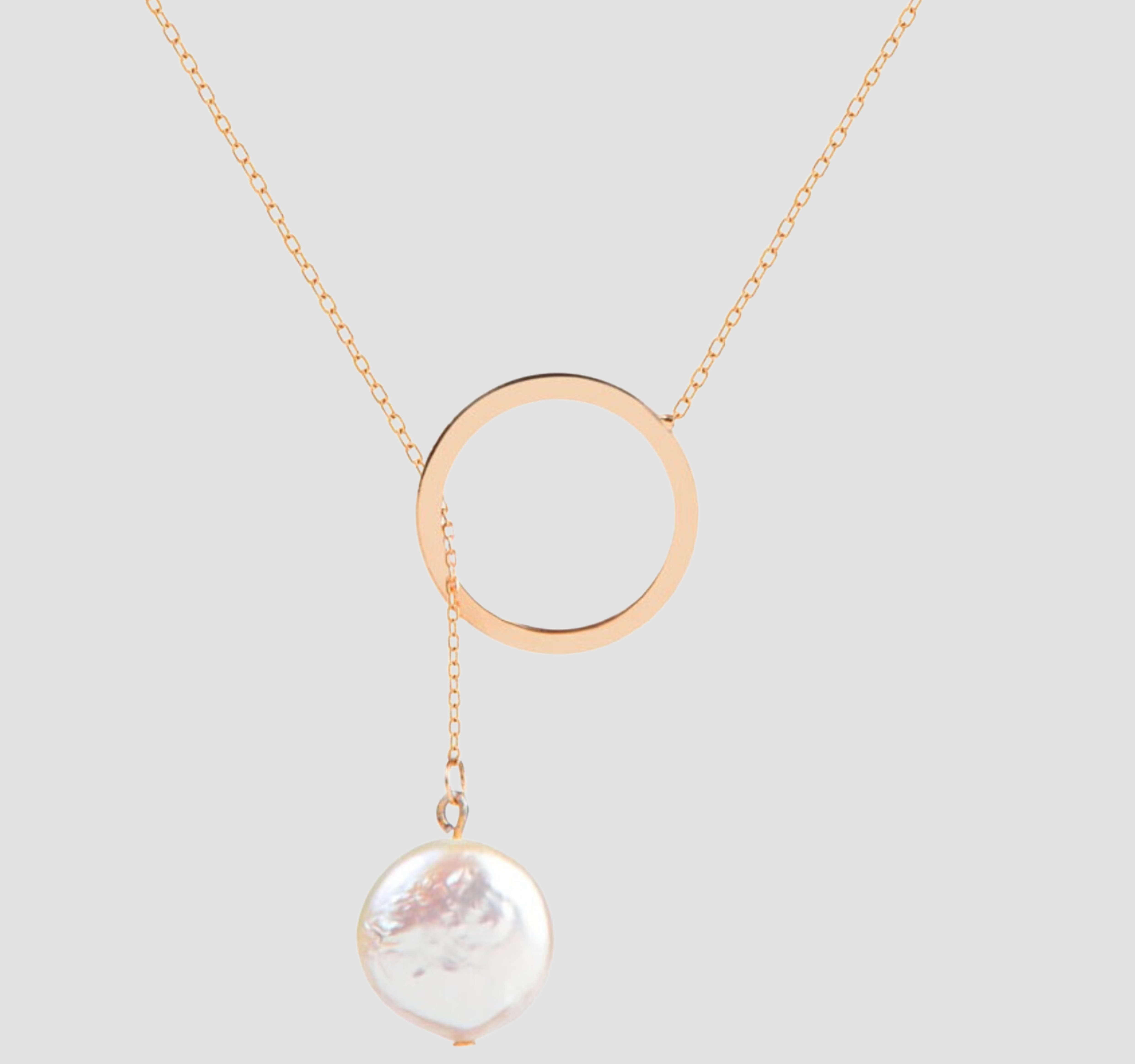 Expertly handcrafted in luxurious 14K or 18K solid gold, this dainty circle necklace elegantly showcases a lustrous bridal shell pearl pendant. Its delicate appearance belies a robust construction, promising longevity and lasting shine.